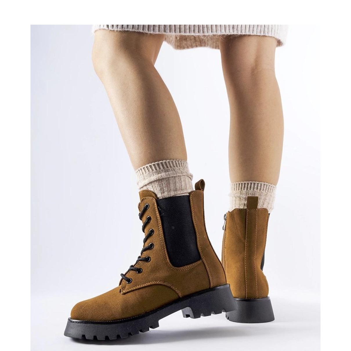 Datorită fermoarului practic, punerea și scoaterea lor este extrem de simplă. Un călcâi plat cu o înălțime de 4 cm asigură soliditatea și stabilitatea în fiecare etapă, iar finisajul dantelat nu numai că adaugă stil, dar vă permite să potriviți perfect piciorul.