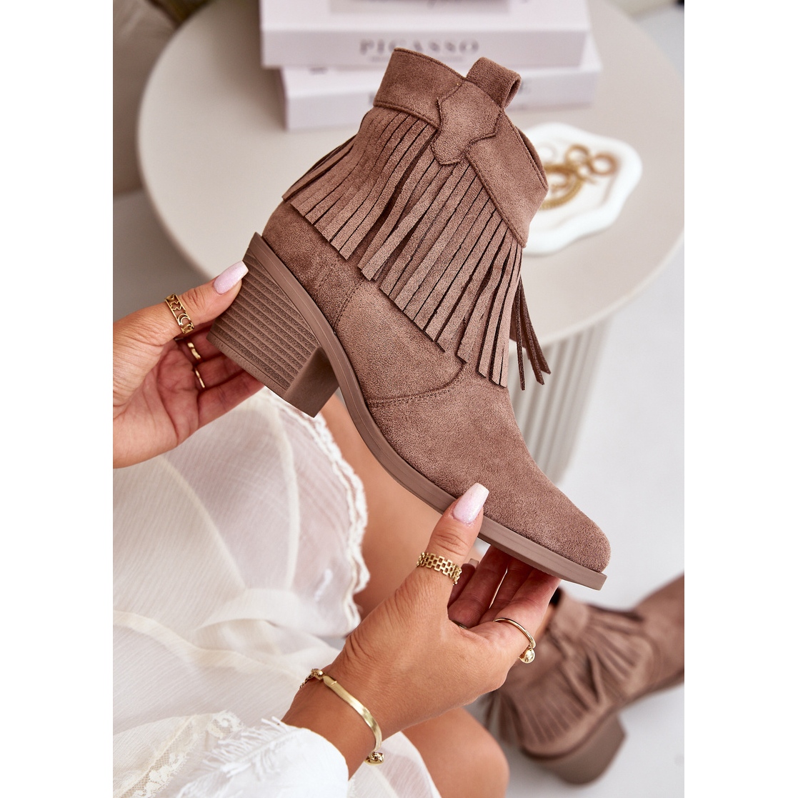 Fabricate din măsuri ecologice de înaltă calitate, aceste cizme combină designul elegant cu stilul de tineret. Fragiile care decorează superiorul le oferă unicitate, ceea ce le face un complement perfect atât pentru stilizări de zi cu zi, cât și pentru mai formale. Datorită fixării convenabile a fermoarului, punerea și scoaterea încălțămintei, devine extrem de ușor.