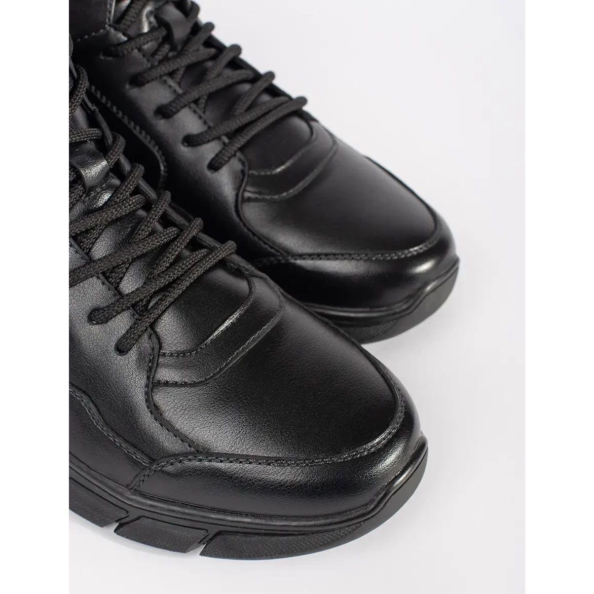 Oferim cizme de bărbați elegante și practice înalte, izolate negru, din piele ecologică de înaltă calitate. Acești pantofi eleganți sunt o propunere ideală pentru bărbații moderni care apreciază atât confortul, cât și aspectul la modă.