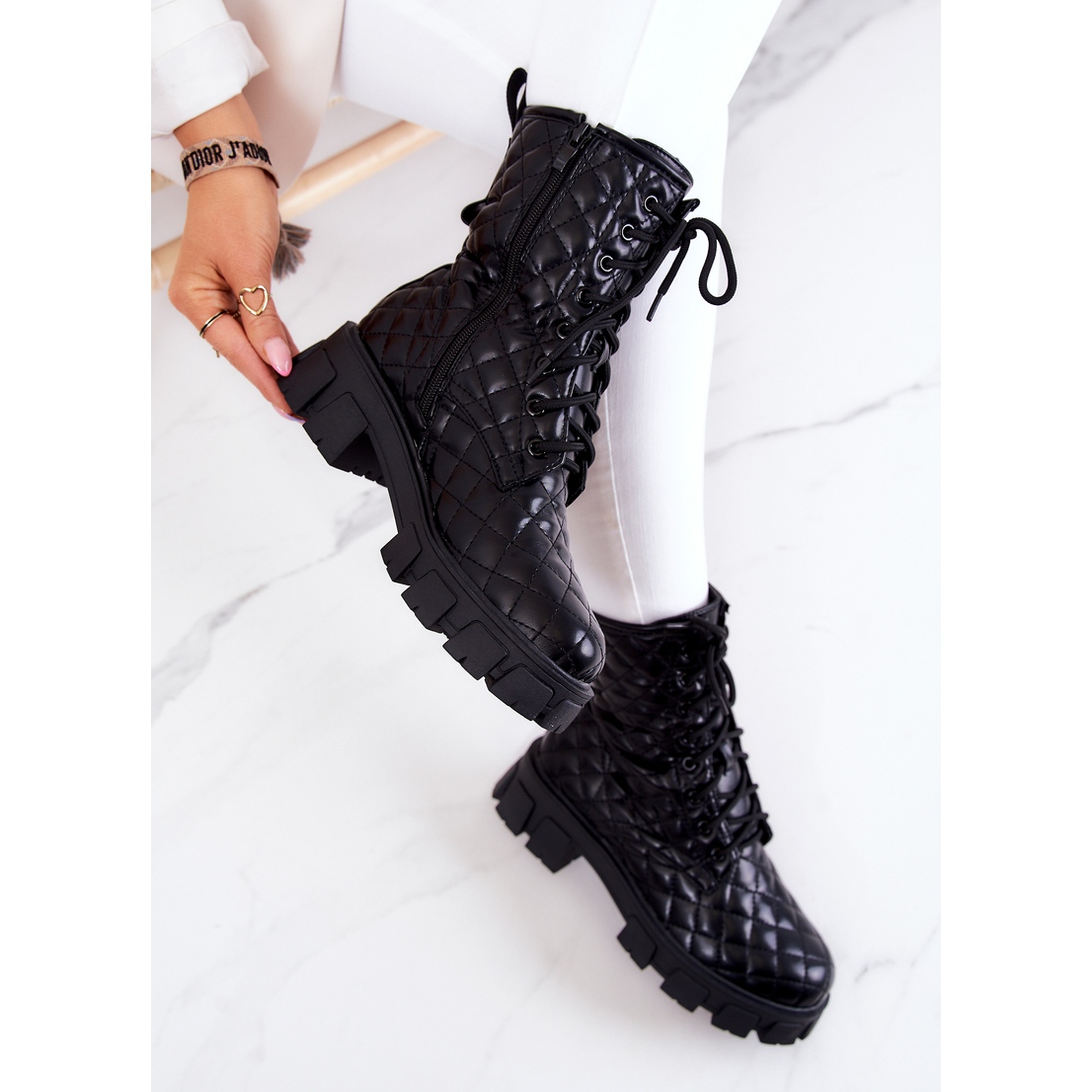 Detalii: PG2 Cizme Maureen negre matlasate pe un post negru