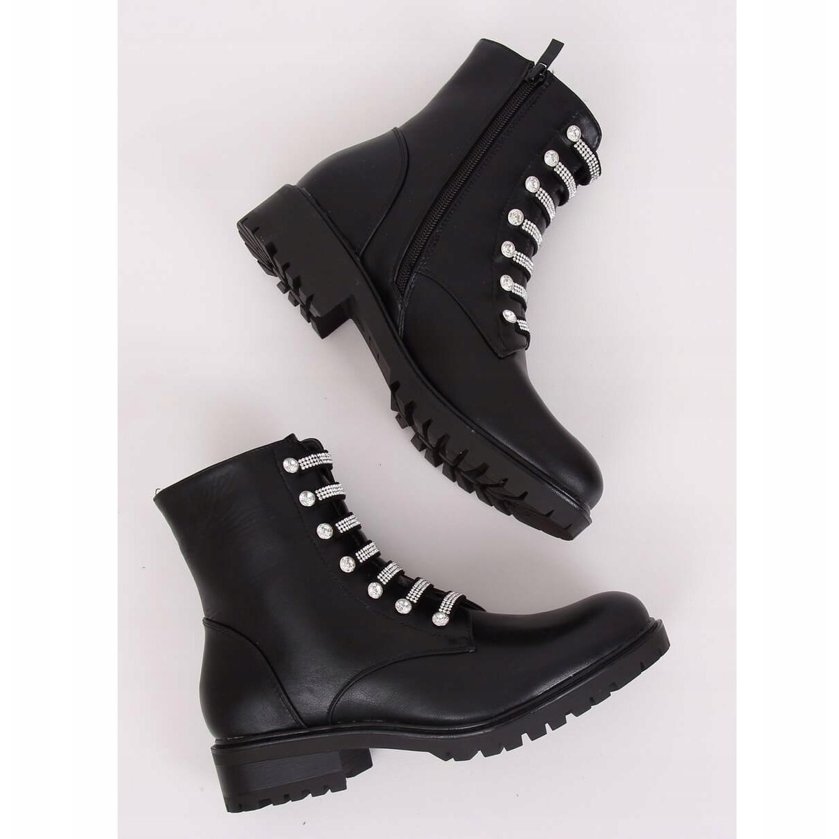 Fața lor este decorată cu dantelă de imitație impresionantă, care este împânzită cu pietre strălucitoare, ceea ce le conferă un caracter unic. Acest model este o alegere perfectă pentru utilizarea de zi cu zi, adăugând un pic de accente militare oricărui stil. Talpa sintetică de înaltă calitate cu un protector garantează o purtare confortabilă și o aderență bună.