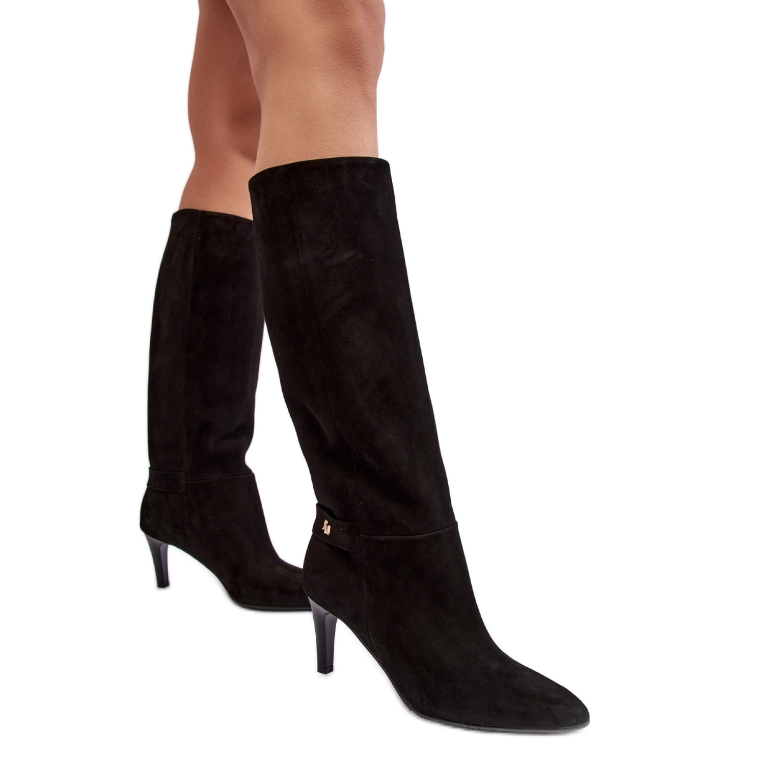 Descoperiți modelul de cizme Laura Messi 2694/300 Negru de la marca The Step in Style, care combină eleganța cu confortul de zi cu zi. Fabricate din piele de căprioară naturală de înaltă calitate, aceste cizme negre sunt o alegere excelentă pentru femeile care apreciază stilul și confortul. Tăierea lor clasică introdusă cu o acoperire superioară în fața genunchiului și a instrumentelor în formă de migdale le face un complement ideal pentru orice stilizare.