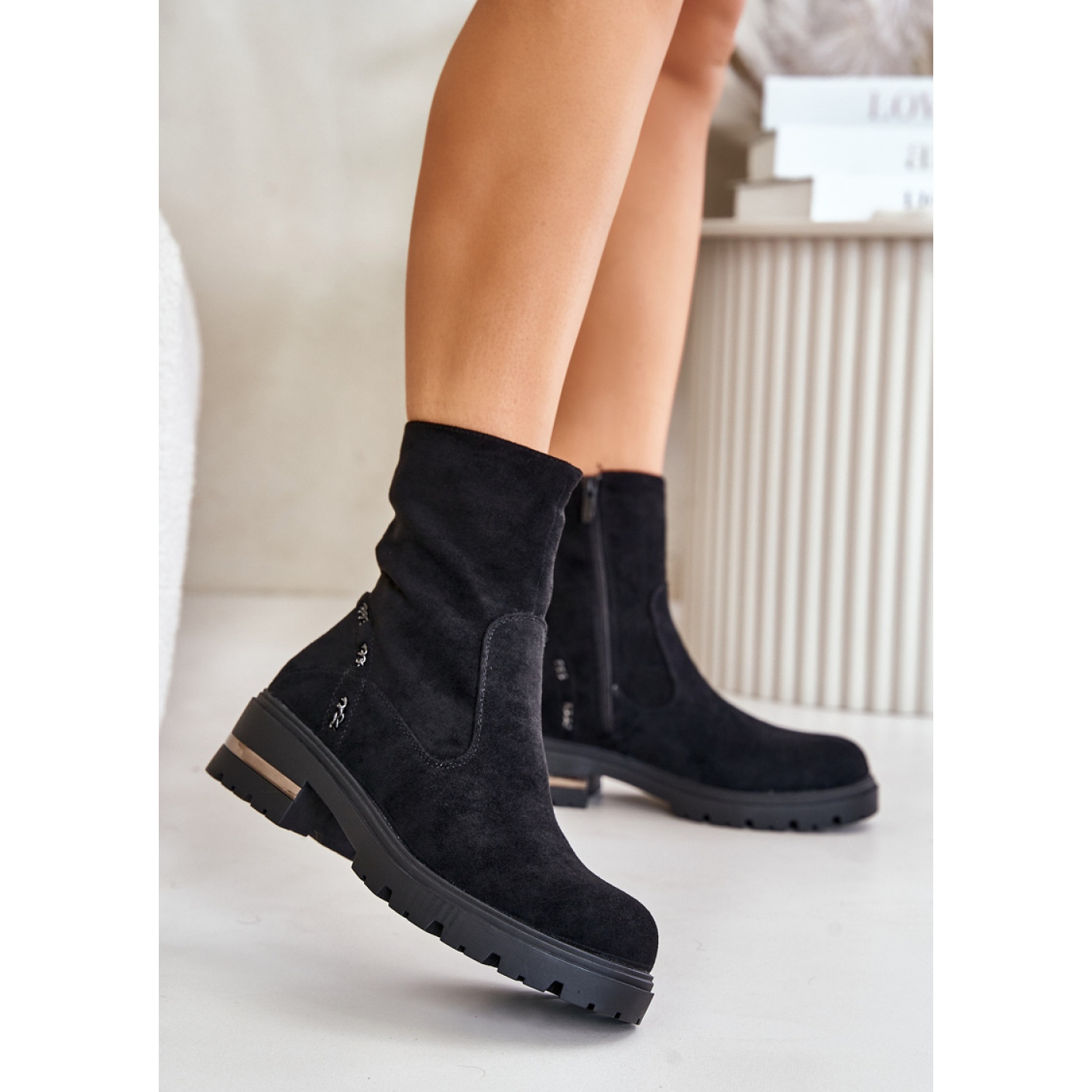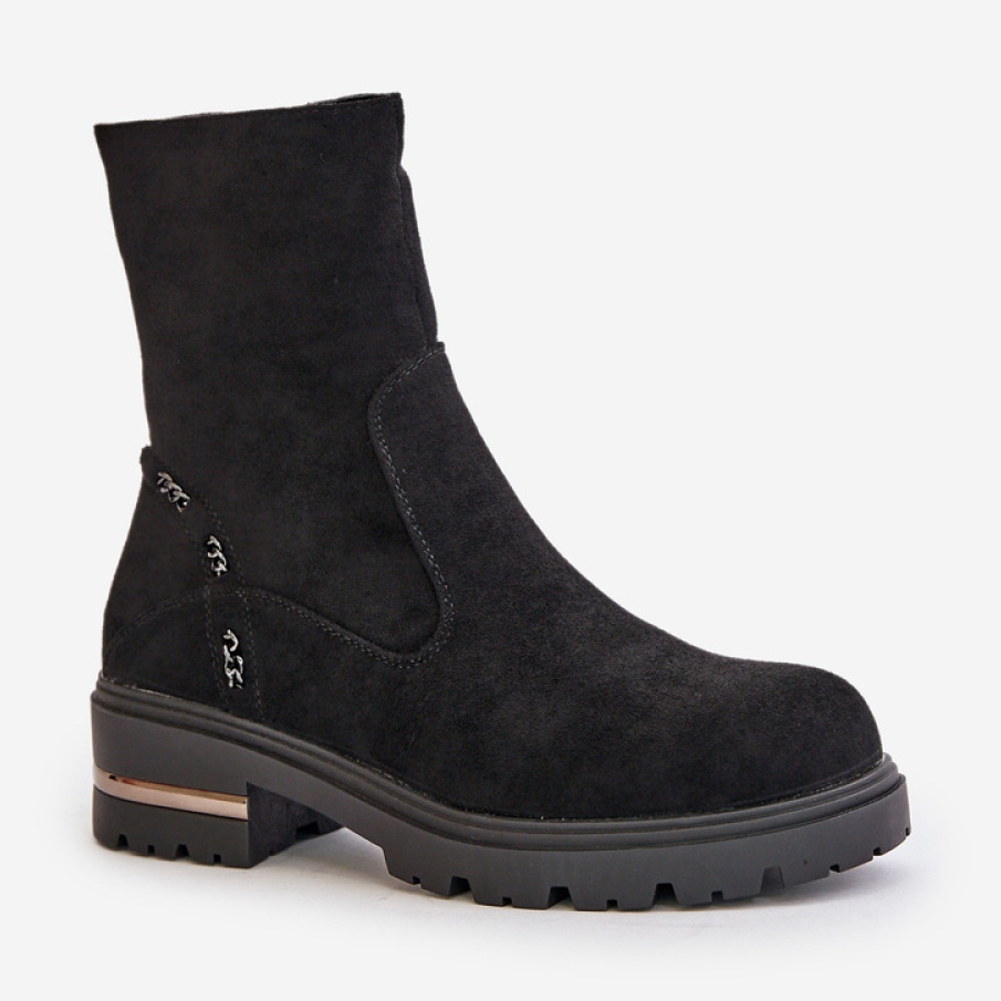 Cizme cu degete de 5 cm înalte, cu degetele de la picioare rotunjite, oferă un confort excepțional pe tot parcursul zilei. Accentul caracteristic sub forma unui lanț decorativ pe partea superioară le oferă un personaj modern și elegant. Datorită izolației păturii de încălzire, picioarele rămân calde chiar și în cele mai reci zile, ceea ce le face o alegere excelentă pentru sezonul de toamnă și iarnă.