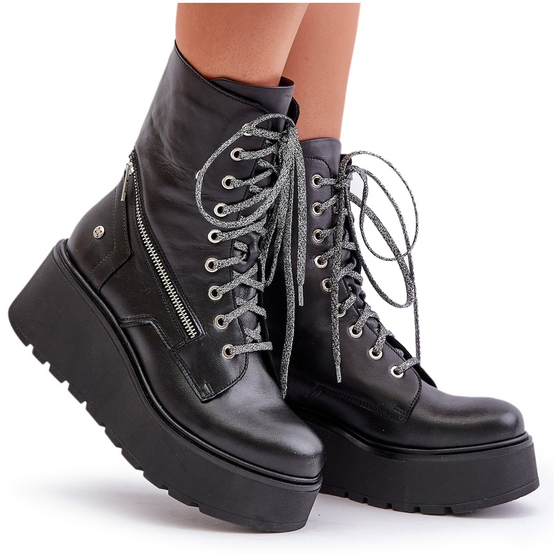 Detalii: Cizme Muncitor Piele Pe Platforma Si Pana Maciejka 06676-01 Negru