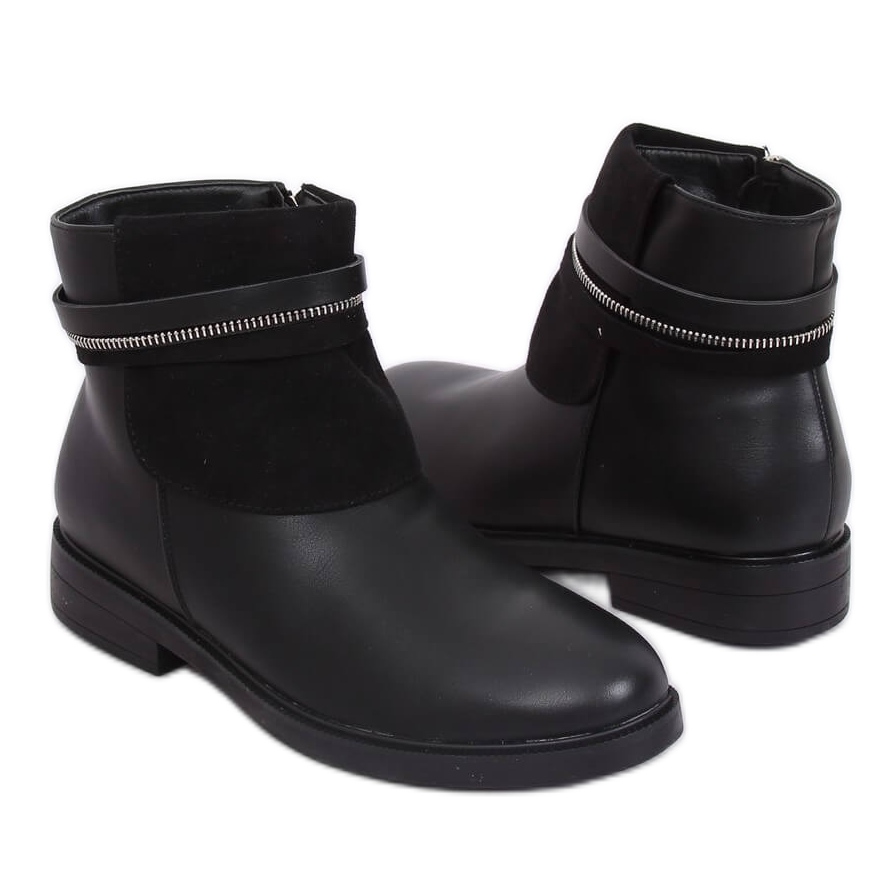Cizmele Chelsea negre de damă HFN-2276-2 sunt o propunere pentru femeile care apreciază eleganța și confortul în stilul de zi cu zi. Aceste botine clasice într-o culoare neagră izbitoare combină designul la modă cu soluțiile practice. Partea din față a pantofilor are o inserție atractivă din piele de căprioară care le conferă un caracter unic. În plus, curelele atrăgătoare din jurul gleznei subliniază silueta feminină și adaugă o notă de extravaganță.