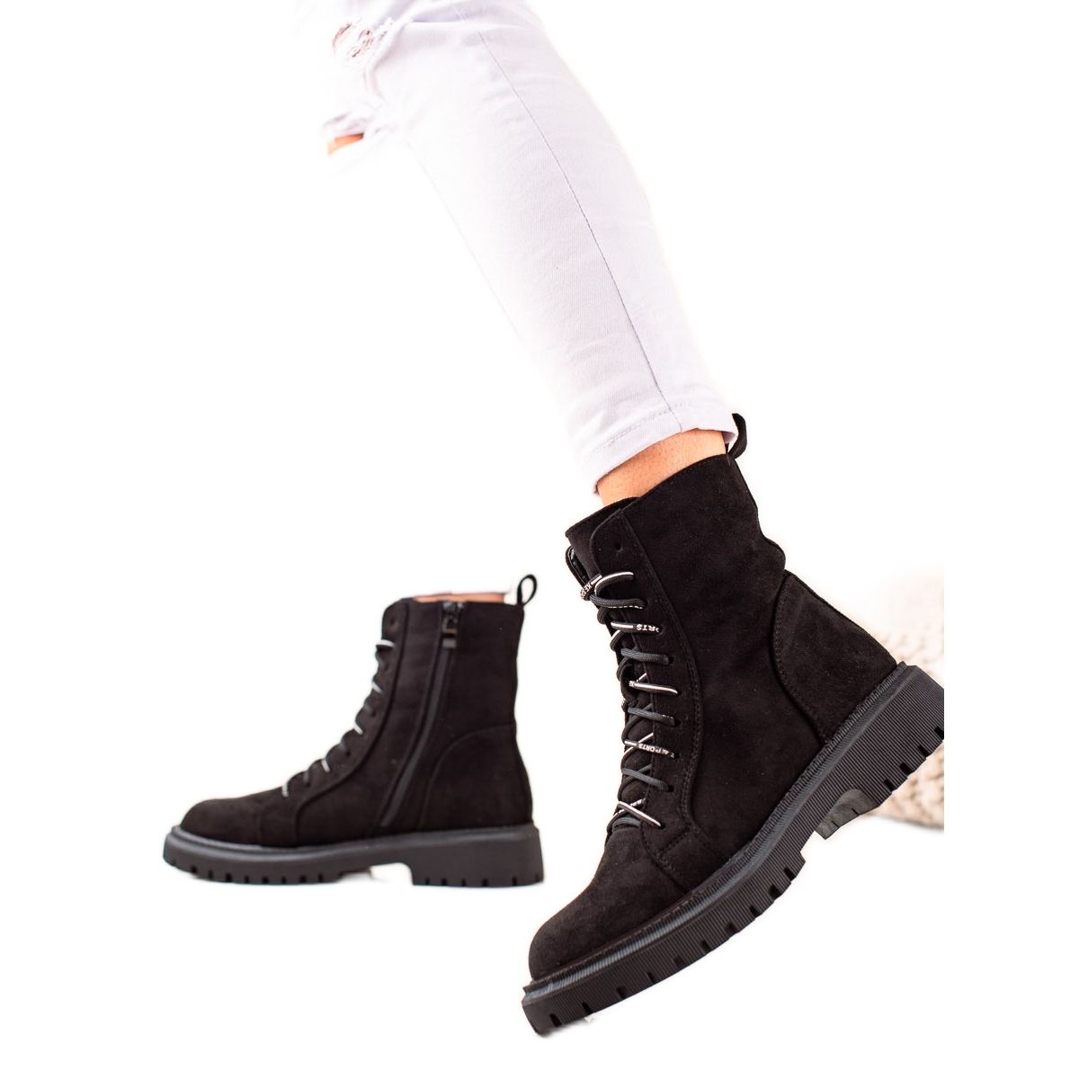Descoperiți eleganța și confortul botinelor negre TRENDI cu șireturi - alegerea perfectă pentru sezonul de toamnă și iarnă. Acești pantofi stilați, creați pentru femeile moderne, combină stilul casual și clasic, făcându-i potriviti atât pentru stilurile de zi cu zi, cât și pentru stilurile mai puțin formale.