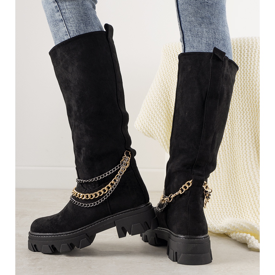 Inna marka Cizme negre cu lanț de sâmbătă negru