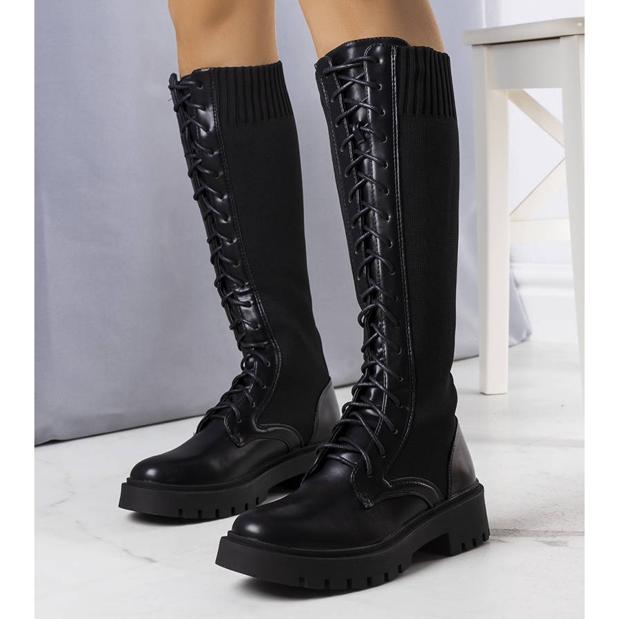 Detalii: BM Cizme negre cu șireturi de la Monren negru
