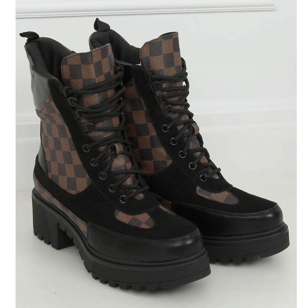 Inna marka Cizme negre cu șireturi de lucru NS169P Negru maro