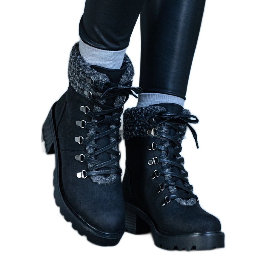 Inna marka Cizme negre cu șireturi decorate cu o haină din piele de oaie Moses negru