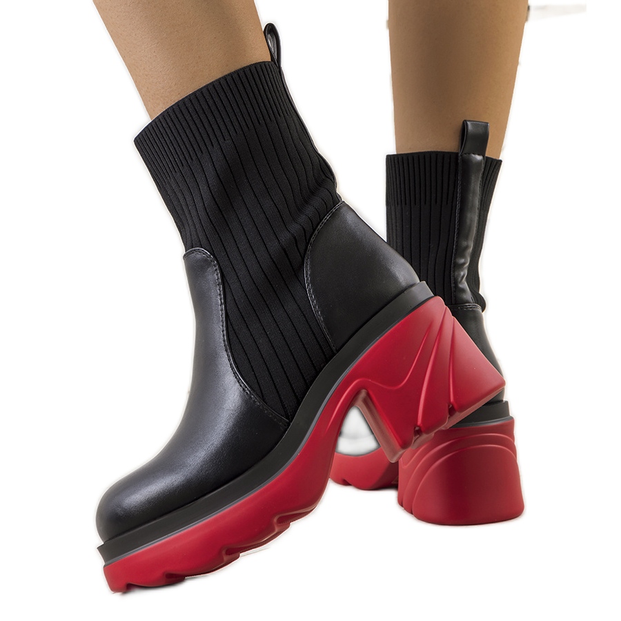 Detalii: PA1 Cizme negre cu talpa Tomlin rosie negru