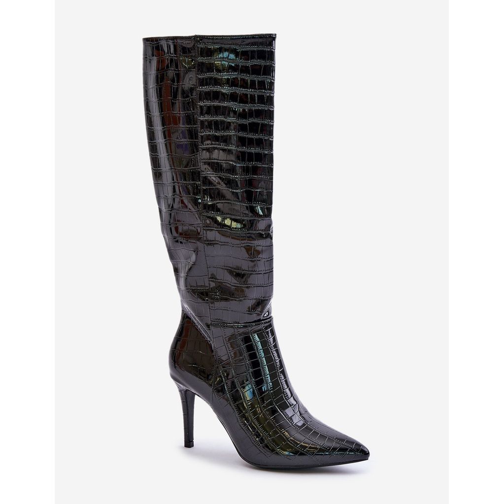 - Model: Cizme cu toc inalt cu relief
