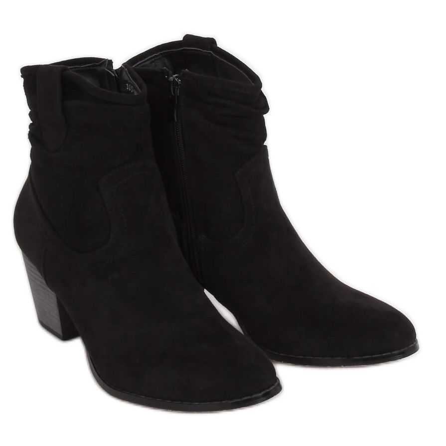 Descoperiți stil și confort extraordinar cu botinele negre cu toc 100-987B0-2 Negru! Aceste botine de dama din piele intoarsa sunt un must-have in garderoba ta si cu siguranta vor atrage atentia. Cu o înălțime a tocului de 6,5 cm, blocul lor stabil asigură confort în timpul purtării pe tot parcursul zilei, iar croiala la modă a cizmelor de cowboy se potrivește perfect tendințelor actuale.