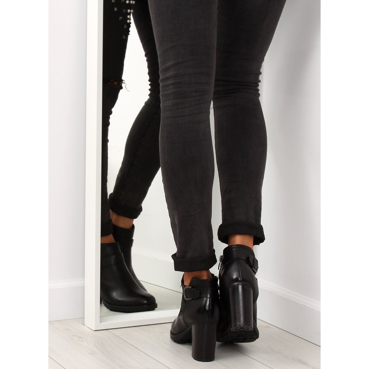Un toc inalt in forma de stalp, de 8,5 cm inaltime, adauga farmec feminin si in acelasi timp asigura stabilitate in mers. O curea atrăgătoare cu cataramă se înfășoară subtil în jurul gleznei, ceea ce nu numai că evidențiază silueta, dar și conferă pantofilor un caracter unic. Inserția laterală elastică se referă la cizmele clasice Chelsea, ceea ce face ca cizmele să fie extrem de confortabile de îmbrăcat și purtat în fiecare zi.