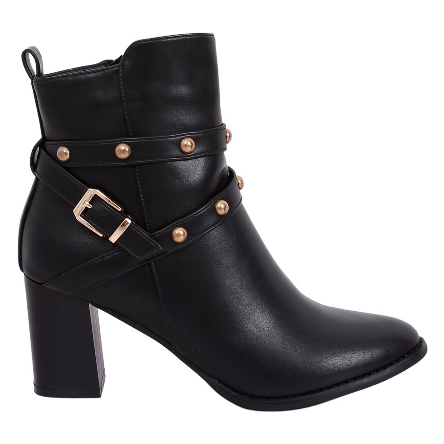 Descoperă eleganța și confortul într-una! Botinele negre cu toc înalt 7968-GA Black sunt alegerea perfectă pentru o femeie modernă care dorește să îmbine stilul cu confortul. Aceste cizme modelate, cu toc stabil de 7,5 cm, încântă cu croiala lor clasică, care a fost îmbogățită cu detalii originale. Dungile decorate cu crampoane aurii conferă căptușei un caracter unic, iar culoarea neagră universală le face să se potrivească cu orice stil, de la casual la mai elegant.
