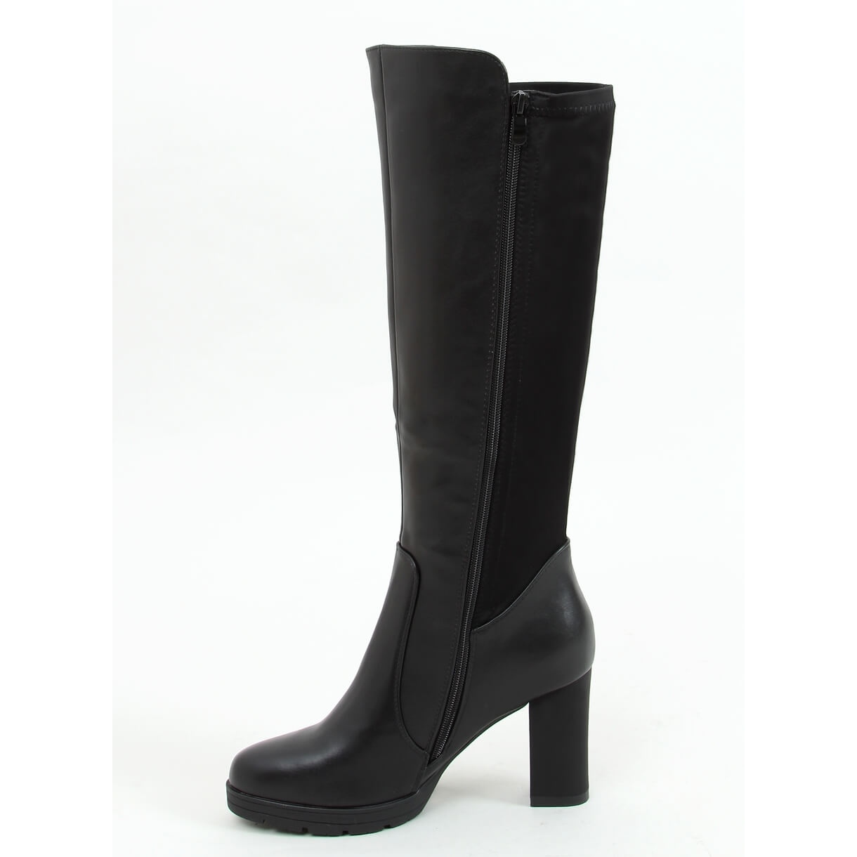 Detalii: Cizme negre cu toc înalt cu partea superioară flexibilă Y8607 Negru