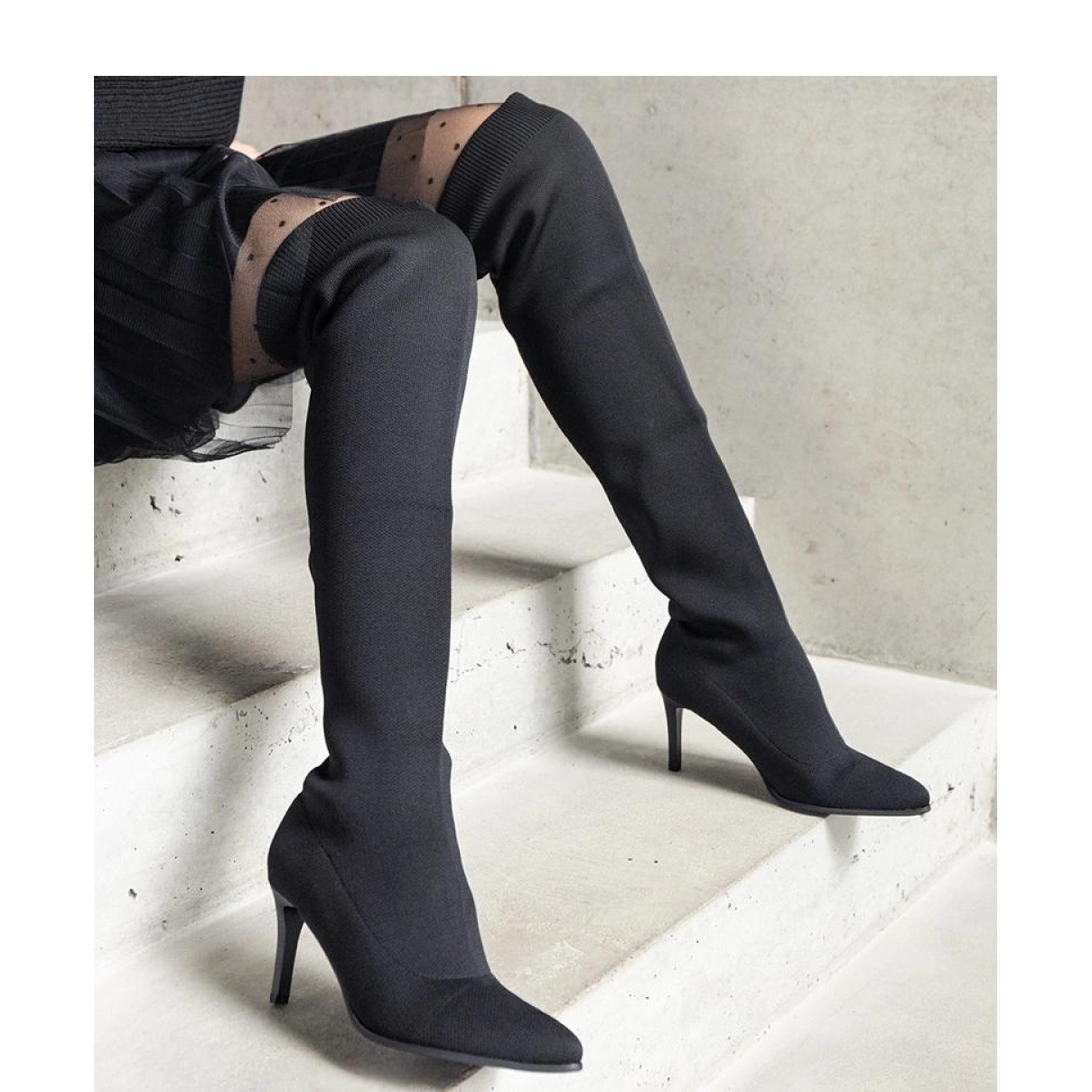 Detalii: Cizme negre cu toc înalt cu slip-on, cu partea superioară elastică negru