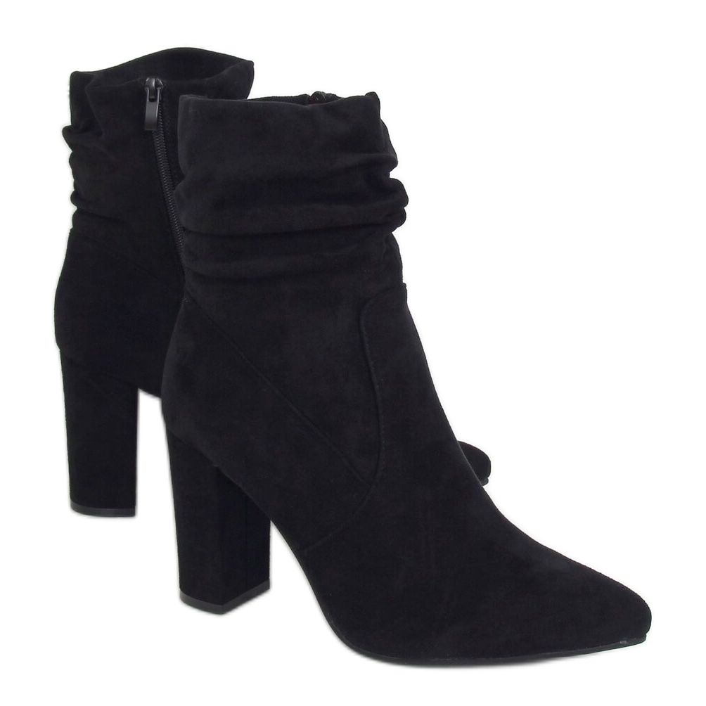 Botinele negre cu toc înalt WS005 Black II Genre sunt o alegere perfectă pentru fiecare femeie la modă care apreciază eleganța și confortul. Aceste cizme se disting printr-o parte superioară cu volană, care le conferă un caracter unic. Degetele conice fac ca pantofii să lungească optic picioarele, ceea ce adaugă eleganță și clasă stilului.
