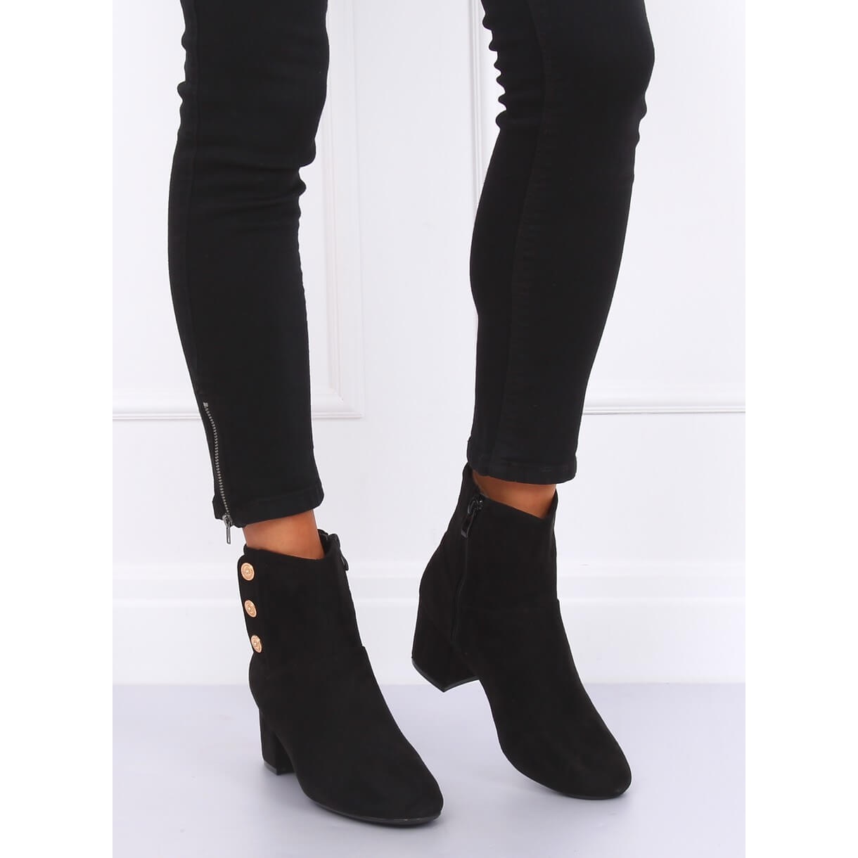 Botinele negre cu toc YL51 Black sunt alegerea perfectă pentru fiecare femeie care apreciază eleganța și confortul în utilizarea de zi cu zi. Confectionate din piele intoarsa ecologica de inalta calitate, aceste cizme clasice incanta prin simplitatea si detaliile subtile, precum nasturii decorativi aurii asezati pe partea superioara.