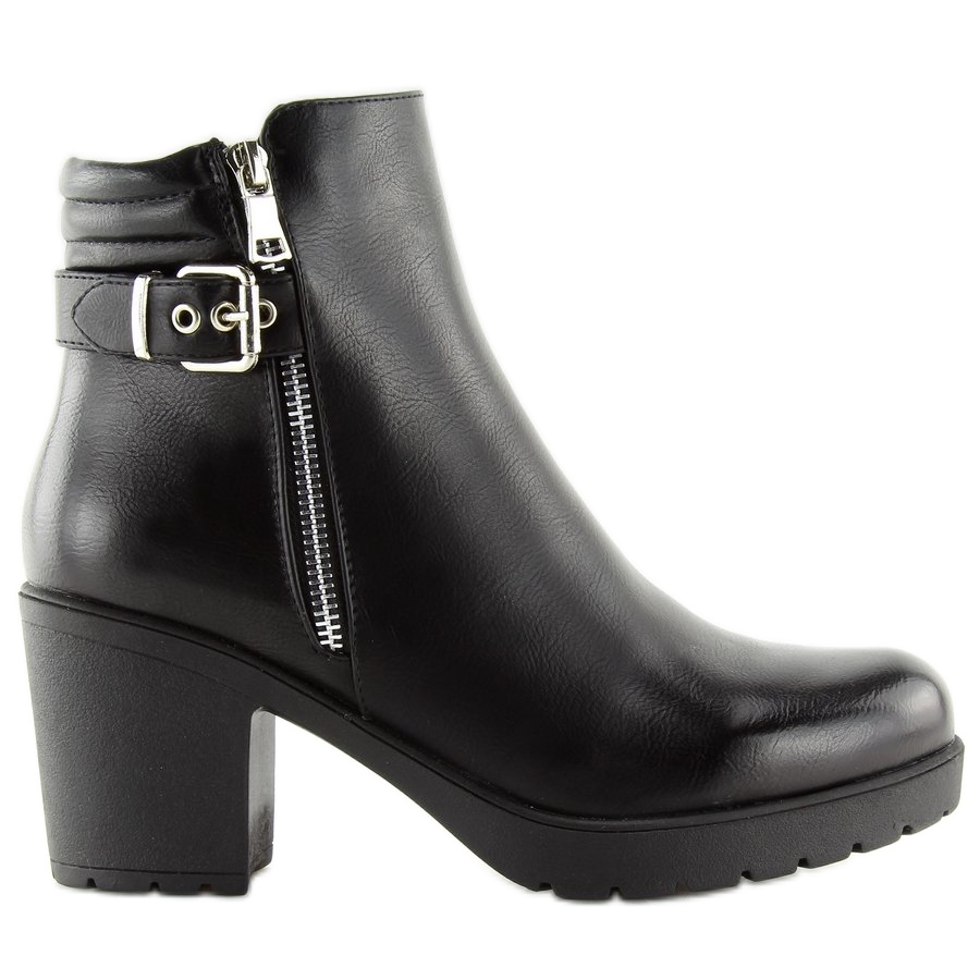 Detalii: Cizme negre cu toc larg NS027P Negru