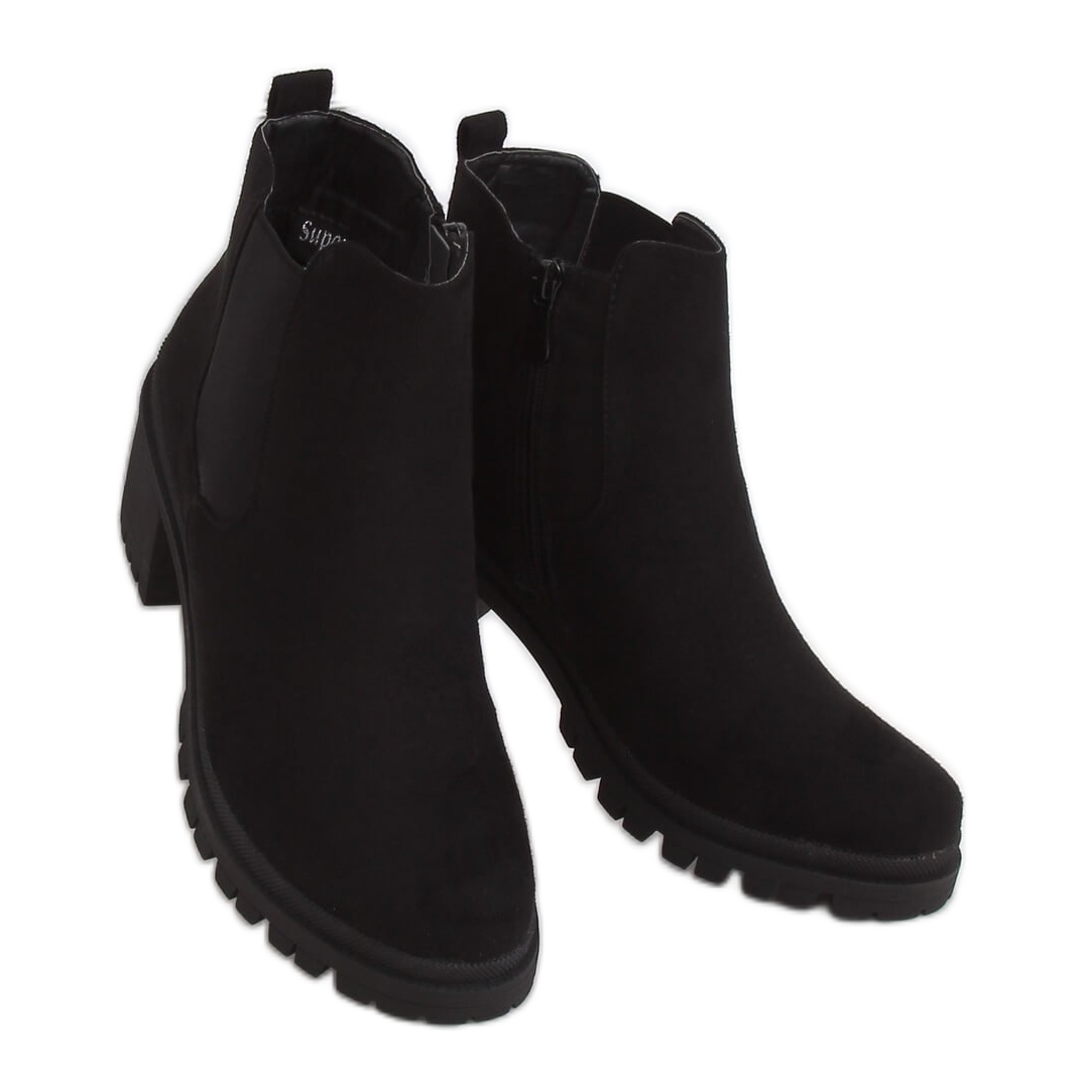 **XJ-25 Botine negre cu toc lat**