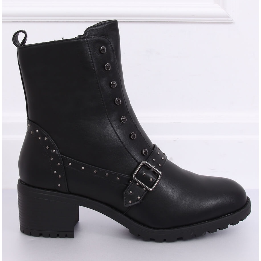 Cizmele negre cu toc înalt 1003-1 sunt o combinație de accente militare cu un personaj rock. Un călcâie stabilă, de 6 cm și o talpă mai groasă, traperată, garantează confortul și un anumit pas, iar știfturile decorative și pietrele negre oferă pantofilor un stil distinct. Electul de fixare practic cu fermoar face mai ușor de pus rapid, interiorul este căptușit cu blană delicată, ceea ce crește confortul de a purta în zile mai răcoroase. Fabricat din piele ecologică - elegant și ușor de îngrijit.