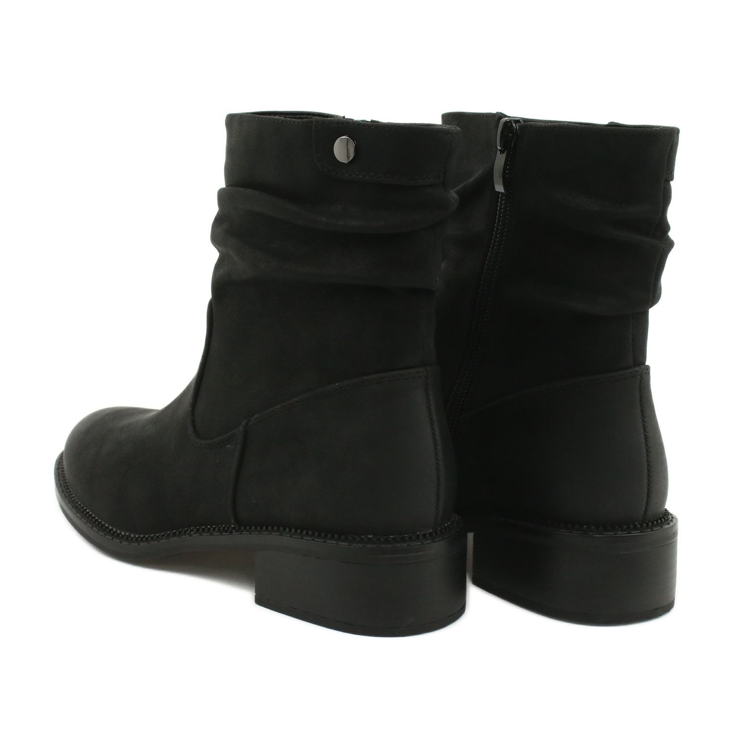 Un fermoar funcțional pe interior îl face ușor de pus, iar partea superioară adunată cu un știft delicat în partea de sus adaugă un caracter unic pantofilor. Datorită tocului plat de 3,5 cm înălțime și tălpii solide, cizmele garantează stabilitate și confort la fiecare pas.
