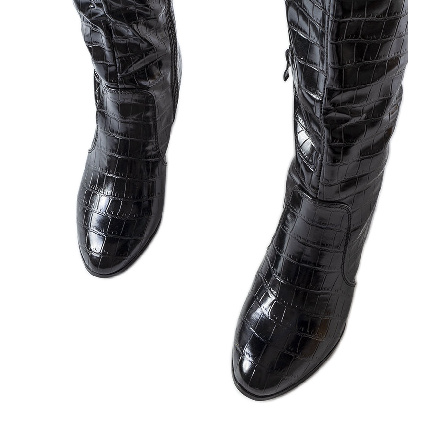 Detalii: Cizme negre de crocodil căptușite cu model Medhane negru
