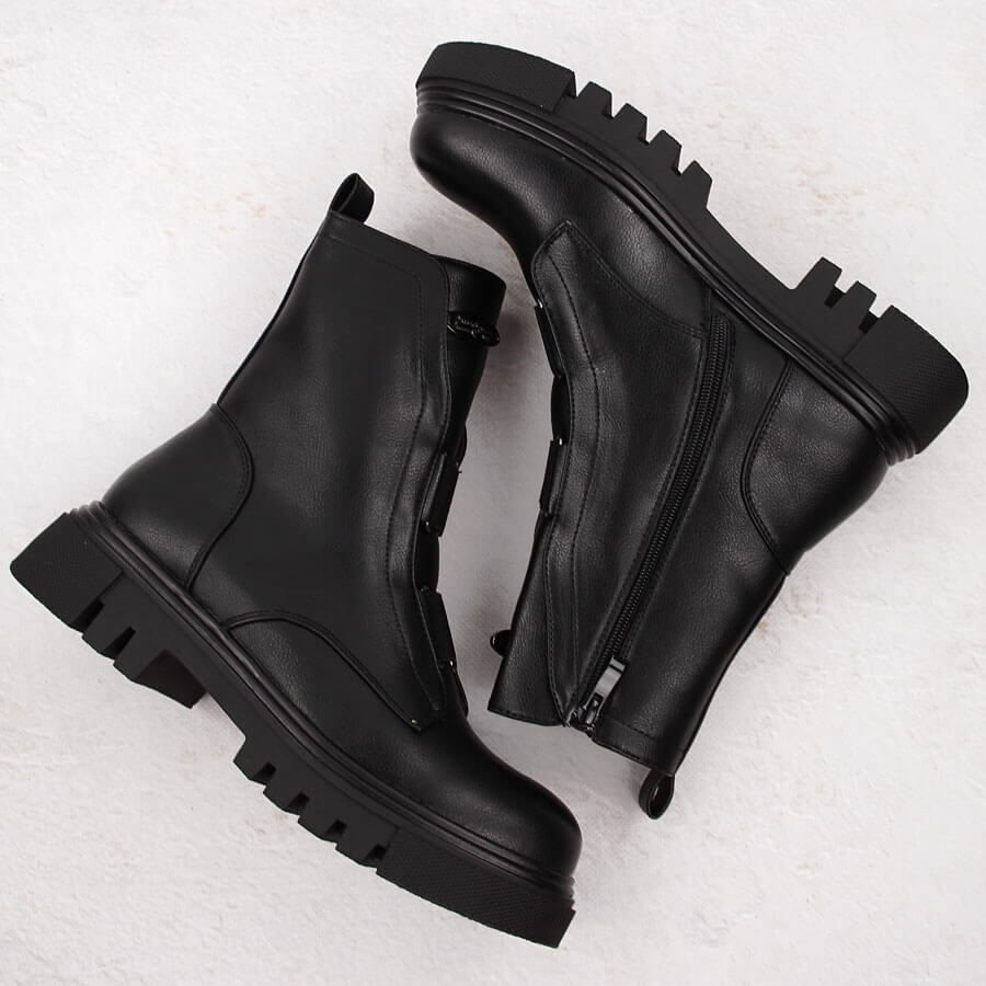 Botinele negre de damă cu platformă Jezzi RMR2150-19 sunt o propunere ideală pentru femeile care apreciază un aspect la modă și confortul la purtare. Confectionate din piele ecologica de inalta calitate, aceste botine imbina designul modern cu solutiile practice. Izolați cu blană plăcută, oferă căldură și confort în zilele mai reci.