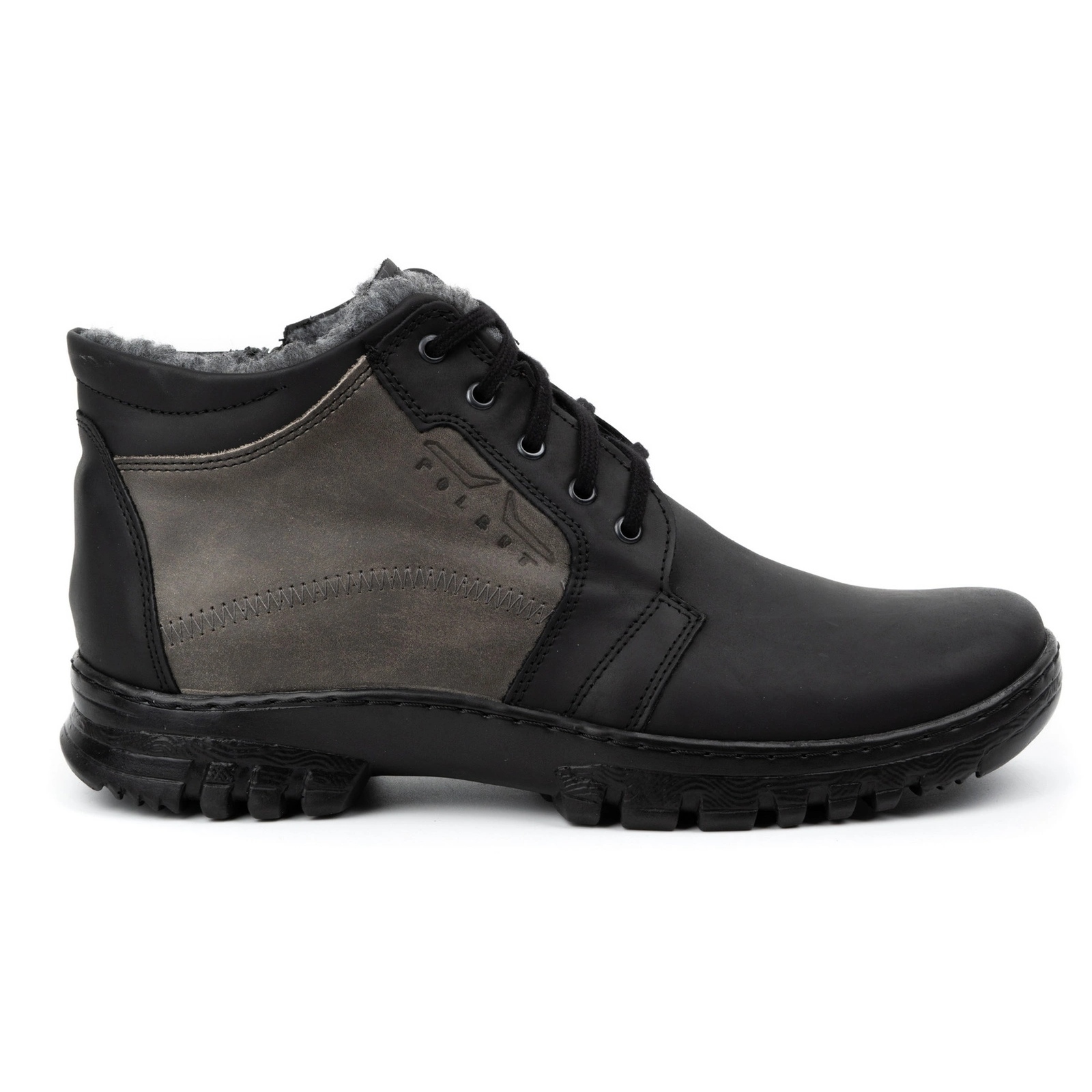 Pantofii eleganți, solizi și confortabili - Polbut K9S sunt o propunere pentru bărbații care se așteaptă la o combinație de iarnă de stil și funcționalitate din încălțăminte. Fabricate din piele naturală de înaltă calitate, într -o culoare neagră clasică, cu un accent gri subtil, acestea sunt excelente atât în condiții urbane, cât și în timpul accesului zilnic la muncă.