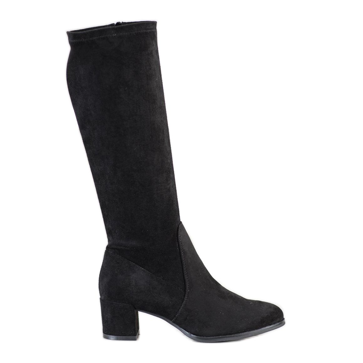 Cizmele au o croiala clasica, completata de un varf rotund, iar un toc stabil de 5 cm inalt asigura confortul la purtare. Lățimea superioară de 34 cm și înălțimea genunchilor le adaugă caracter și le fac să se potrivească perfect cu diverse stiluri. Contorul de călcâi rigid încorporat și o talpă solidă și netedă din plastic asigură nu numai stil, ci și siguranță în timpul mersului.