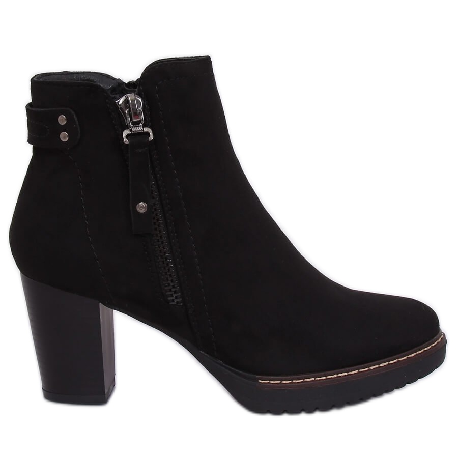Va prezentam botinele cu toc in piele intoarsa 8B856 de culoare neagra - un must-have pentru fiecare femeie la moda! Aceste cizme de dama elegante se caracterizeaza printr-un toc stabil de 8 cm inalt, care iti asigura confort si incredere in pasul tau. Croiala clasica cu cusaturi subtile de-a lungul talpii si fermoar decorativ pe partea superioara le ofera un farmec unic.