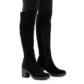 Cizmele de margaret elegante și practice de la marca Olivier combină o tăietură atemporală cu confort în fiecare zi. Fabricate în Polonia din piele naturală din piele de căprioară, cu o tăietură simplă, feminină, ajungând la genunchi (aproximativ 52 cm), vor fi o alegere excelentă pentru toamnă și iarnă.