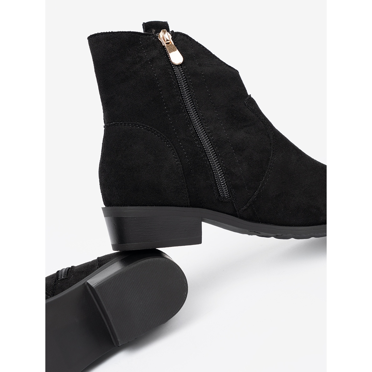 Construit -călcâiul și încălzirea fac încălțăminte nu numai estetică, ci și practică și confortabilă de purtat. Un nas rotund în formă de rotundă le oferă delicatesă, iar o talpă netedă din plastic oferă o prindere și stabilitate adecvată.