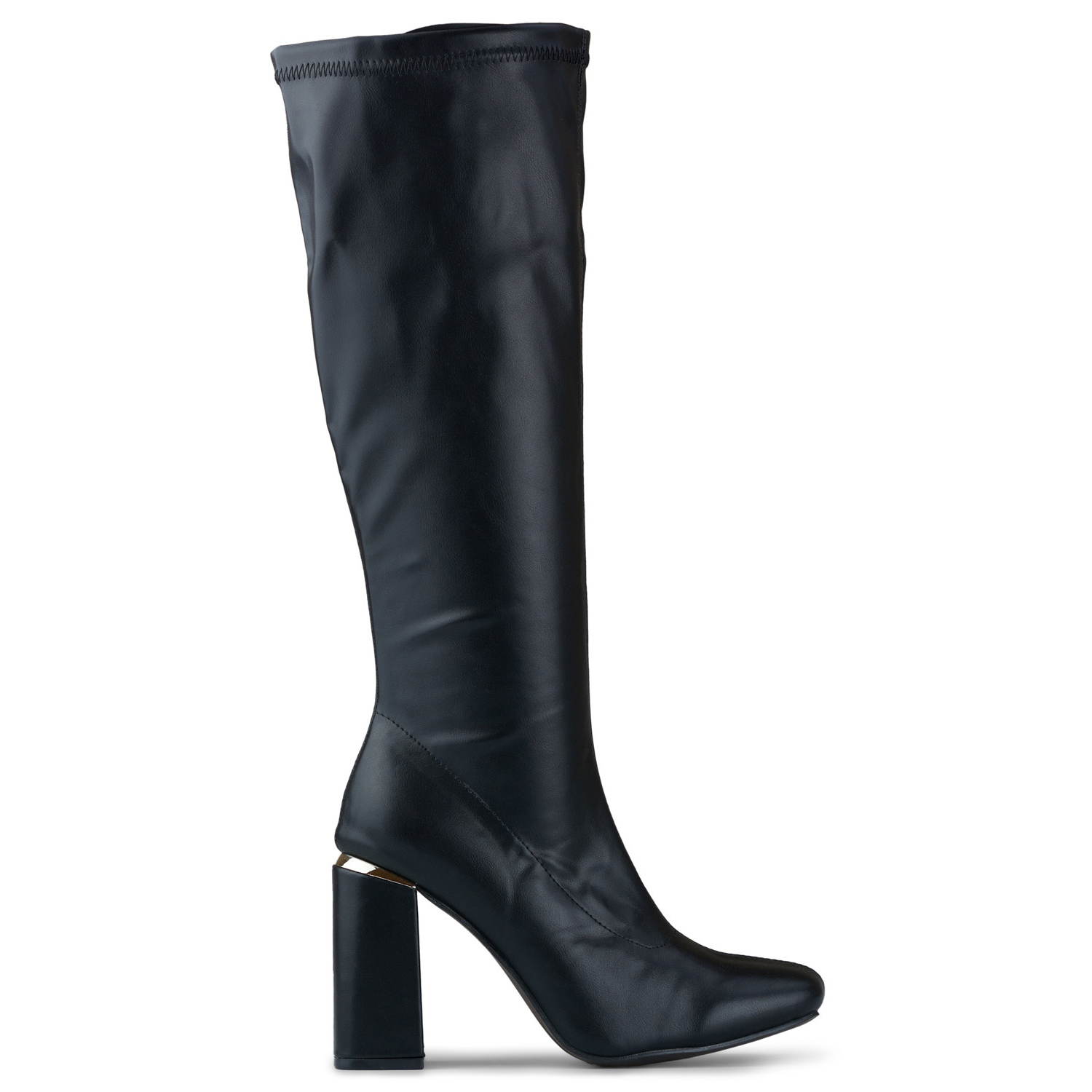 Cizme Black Eco -Leather pe un post înalt - Eleganță și confort pentru sezonul de toamnă/iarnă