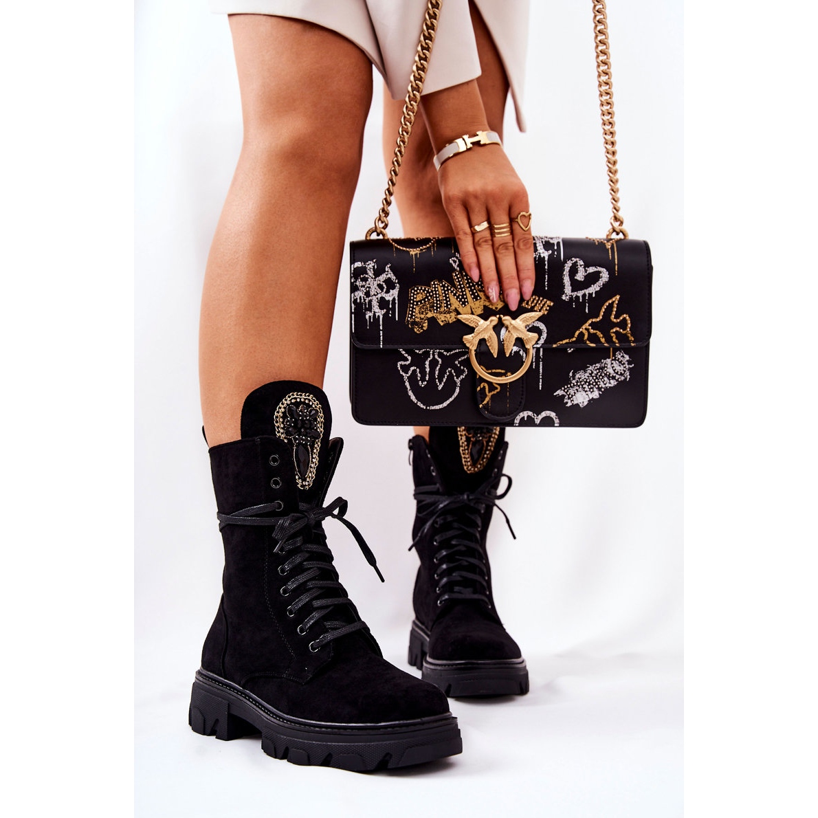 Detalii: PL4 Cizme negre din piele intoarsa cu ornamente Elaina negru
