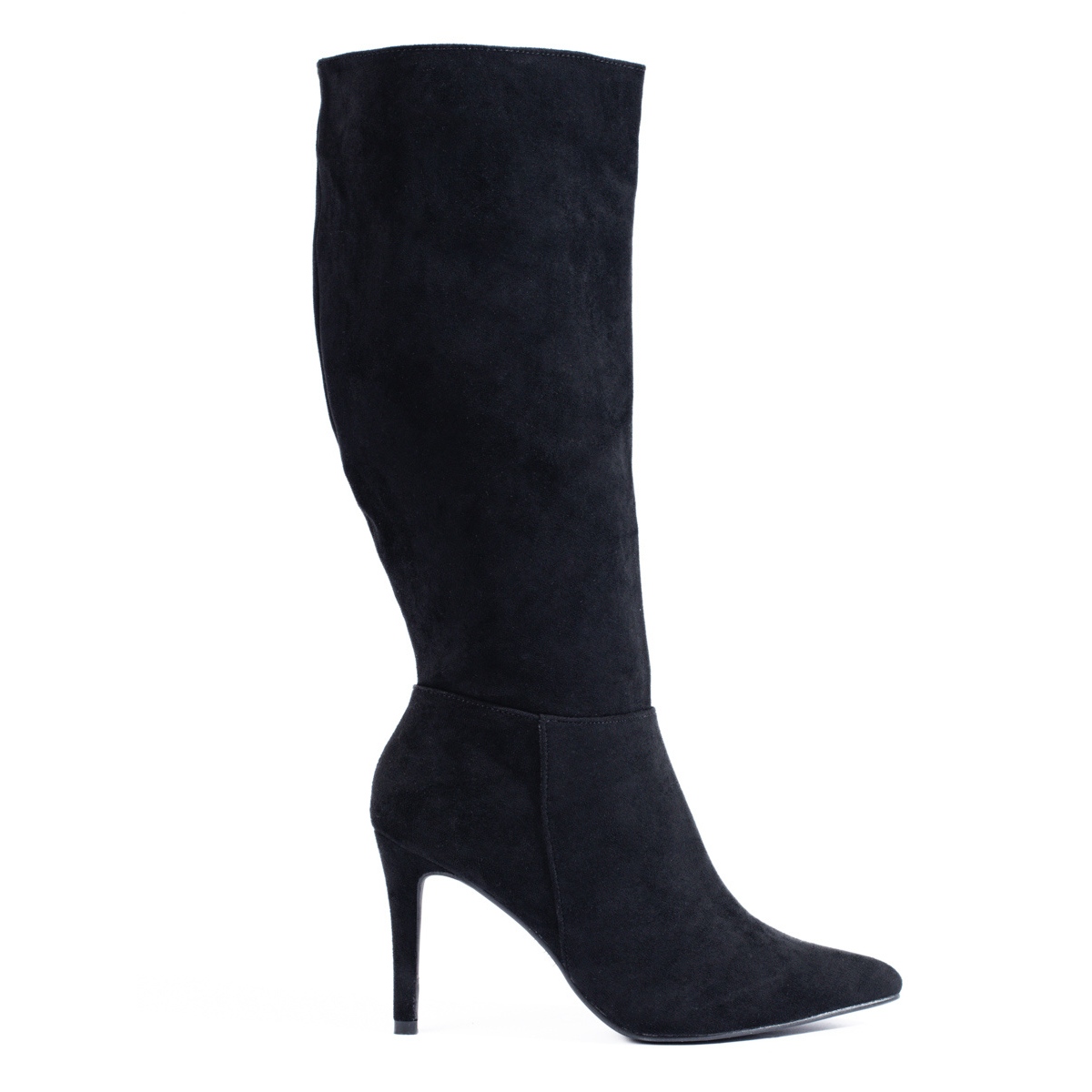 - Model: Cizme negre din piele intoarsa cu toc inalt