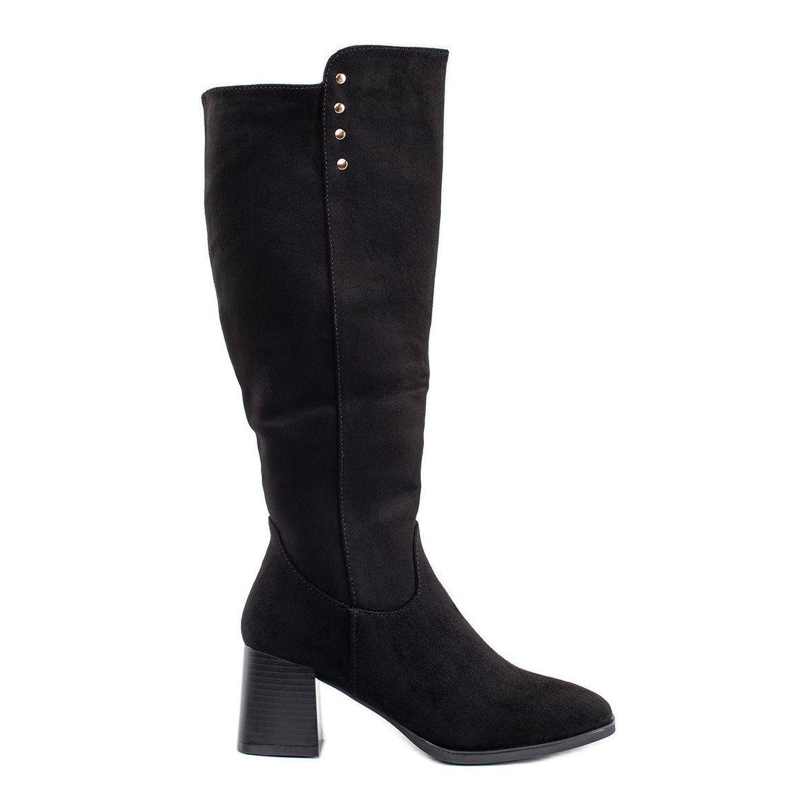 Detalii: Cizme negre din piele intoarsa cu toc inalt negru