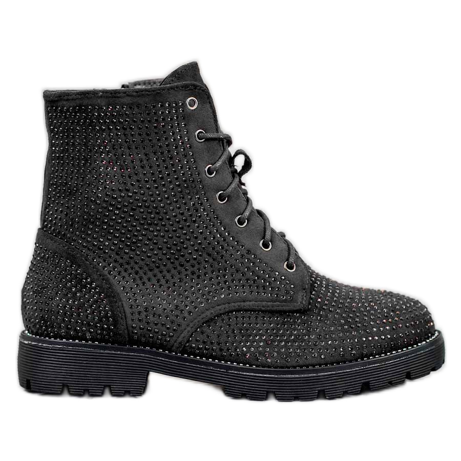 Cizmele sunt echipate cu șireturi practice și fermoar lateral, ceea ce le face ușor de pus și scos. În plus, cristalele delicate care decorează partea superioară atrag atenția și adaugă un pic de strălucire întregului, făcându-le o alegere excelentă pentru diferite ocazii.