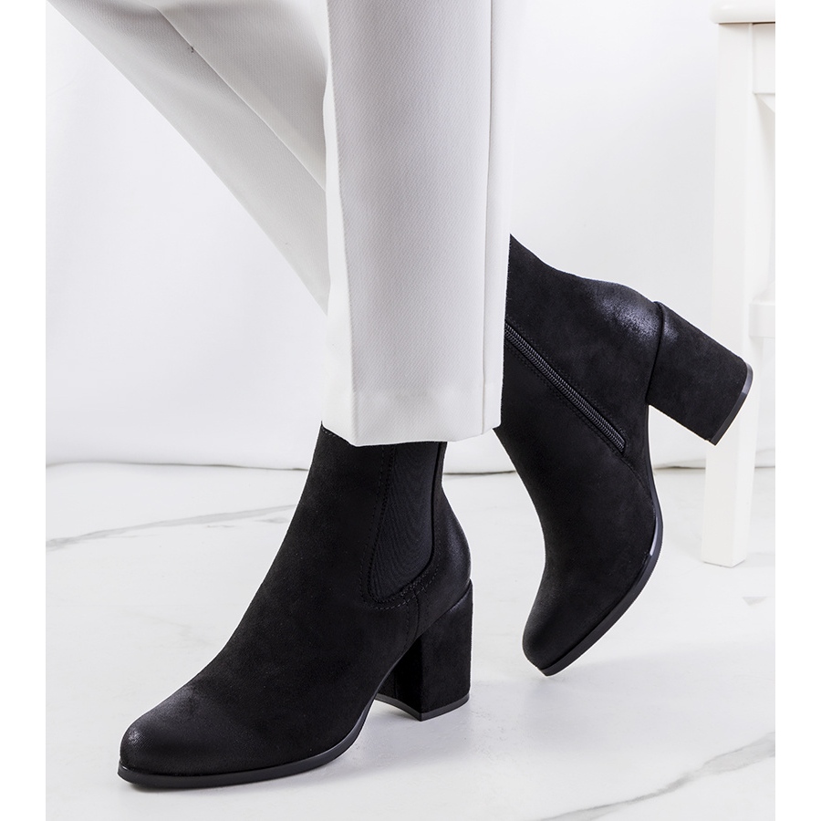 Cizme clasice, feminine, din piele ecologică, cu textură din piele de căprioară. Fixat cu un fermoar din interior, încorporat pe un post stabil, mediu (înălțimea călcâiului: 7 cm). Ușor izolat în interior, perfect pentru zile mai răcoroase. Numerotare standard - Vă rugăm să alegeți dimensiunea obișnuită.