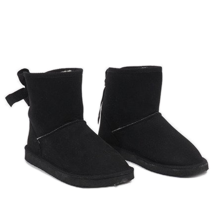 Incaltamintea neagra, piele intoarsa din piele ecologica arata extrem de stilata, iar varful rotund le confera un farmec subtil. Întregul este completat de o fundă delicată pe spatele căptușelii, care le conferă un caracter unic. Interiorul încălțămintei este umplut cu blană ușoară, care izolează eficient, asigurând confortul purtării chiar și în zilele cele mai reci.