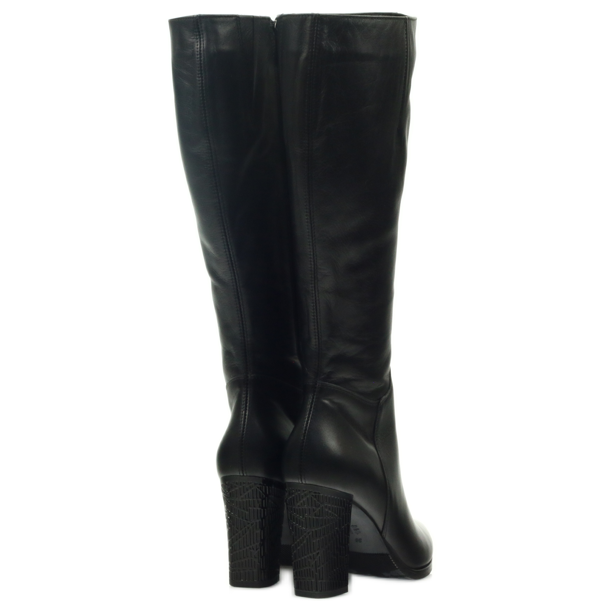 Cizmele negre Espinto au o croială clasică, ajungând până la genunchi, ceea ce le face un plus universal pentru diverse stiluri - de la casual la mai elegante. Tocul înalt de 8,5 cm decorat nu este doar estetic, ci mai presus de toate stabil și confortabil de utilizat, ceea ce vă permite să îl purtați mult timp fără a vă simți obosit.