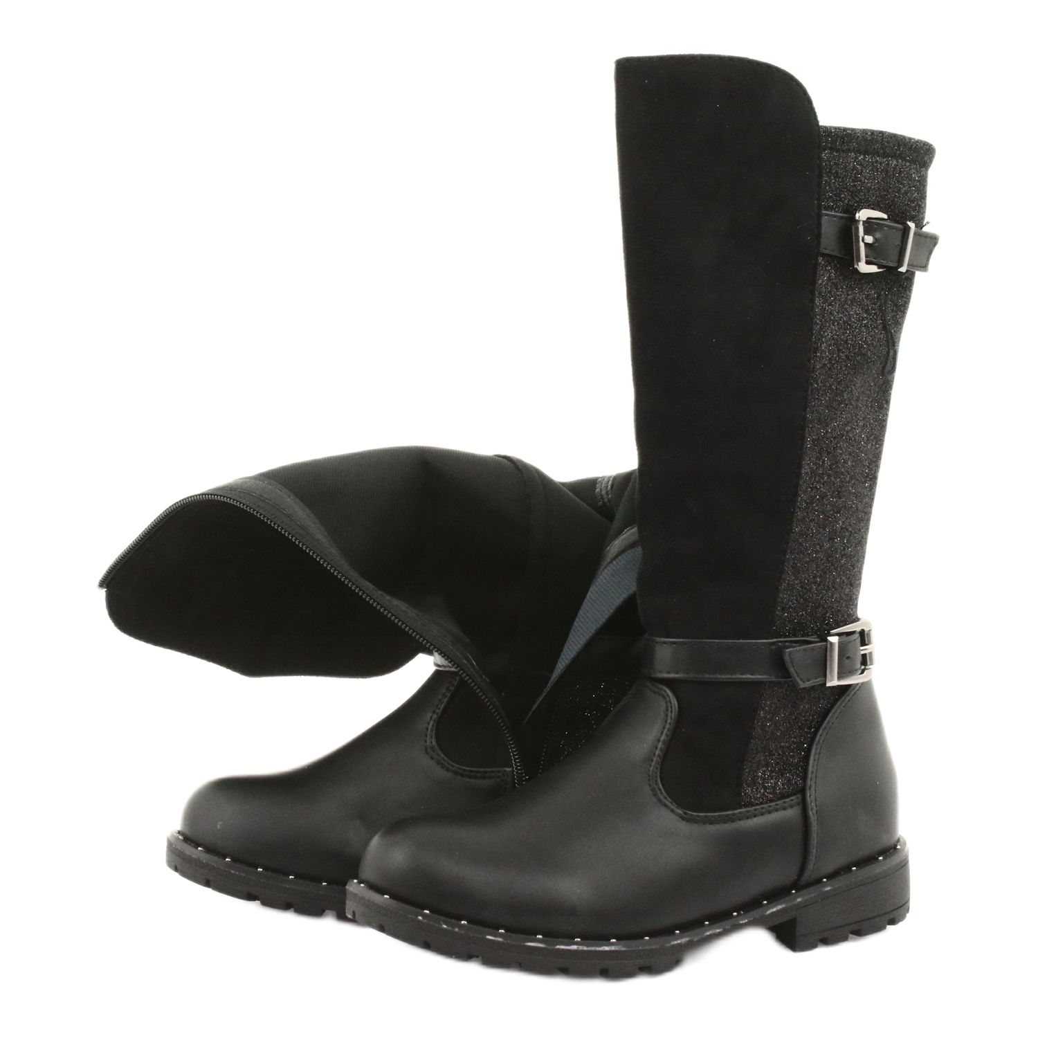Cizmele pentru fete Evento 1501 în nuanțe de negru și gri sunt o alegere perfectă pentru micuții iubitori de modă care doresc să arate stilat și să se simtă confortabil în zilele reci. Aceste cizme lungi combină eleganța și funcționalitatea, ceea ce le face perfecte pentru toamnă și iarnă.