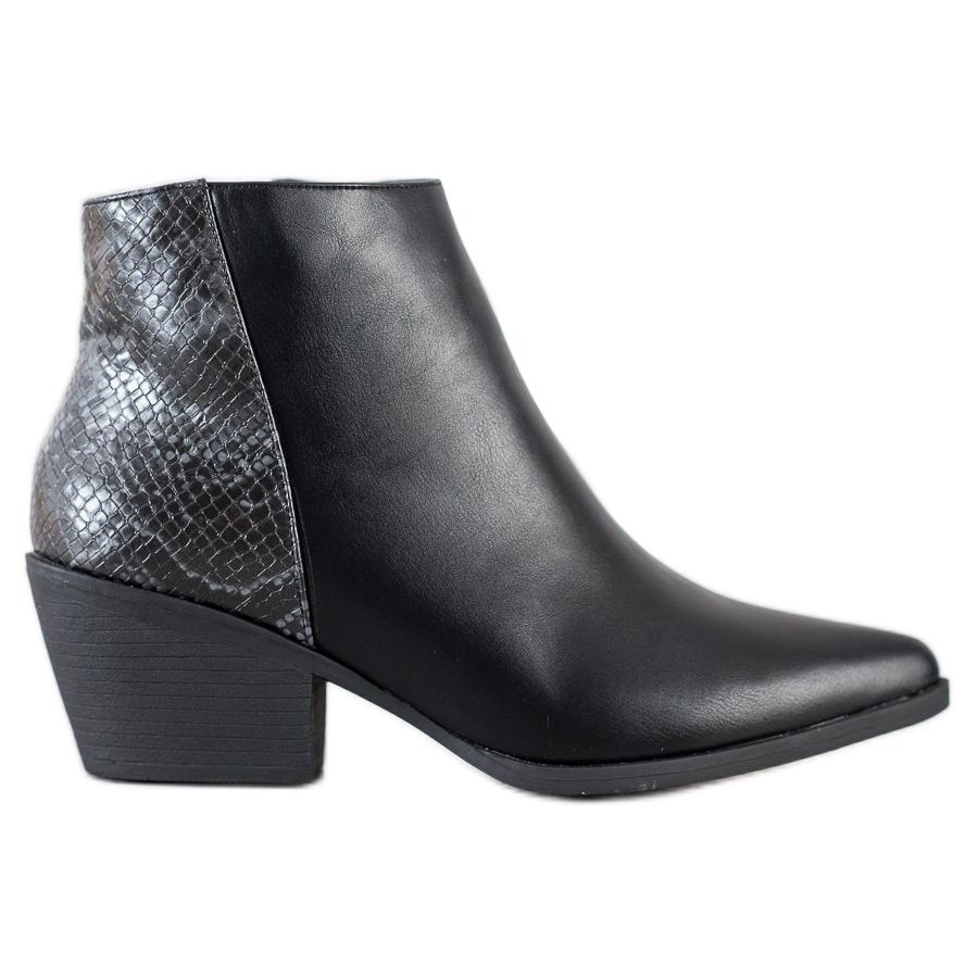 Caracteristica distinctivă a modelului este nasul ascuțit, care adaugă caracter și eleganță, iar modelul animal le conferă un aspect unic. Un toc stabil în formă de bloc cu o înălțime de 6,5 cm asigură confortul purtării pe tot parcursul zilei, ceea ce face din aceste cizme o alegere perfectă atât pentru utilizarea de zi cu zi, cât și pentru ocazii speciale.