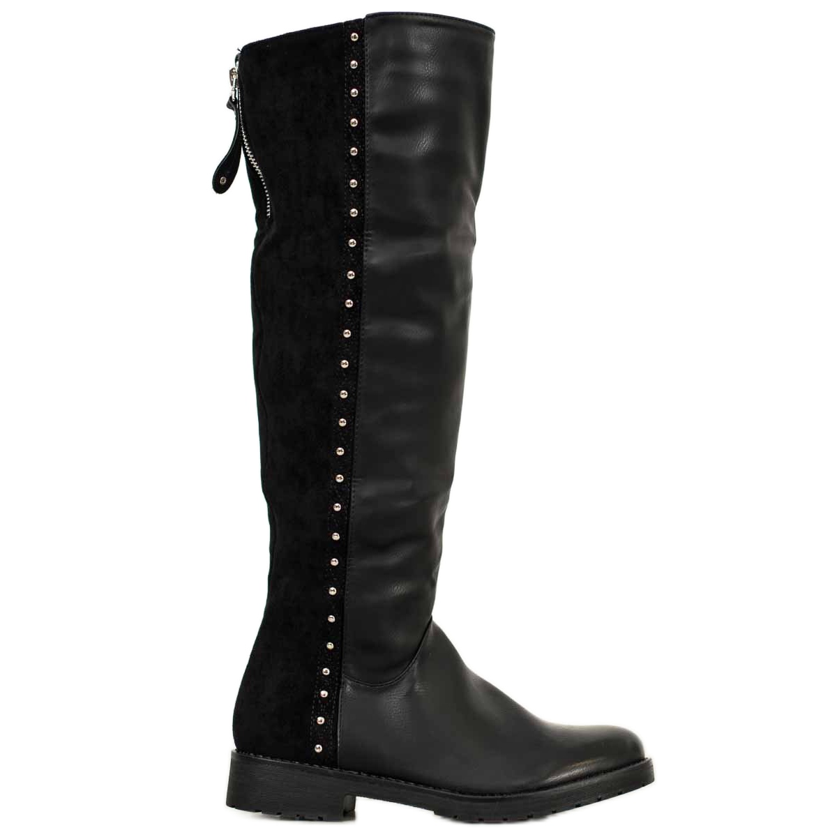Partea superioară până la genunchi nu sunt doar practice, ci și un element important de modă - finisajul din piele de căprioară pe spate adaugă o notă subtilă de lux pantofilor. Interiorul izolat al cizmelor garanteaza confort si caldura chiar si in zilele reci. Călcâiul încorporat și rigidizat oferă suport și protecție excelentă piciorului.
