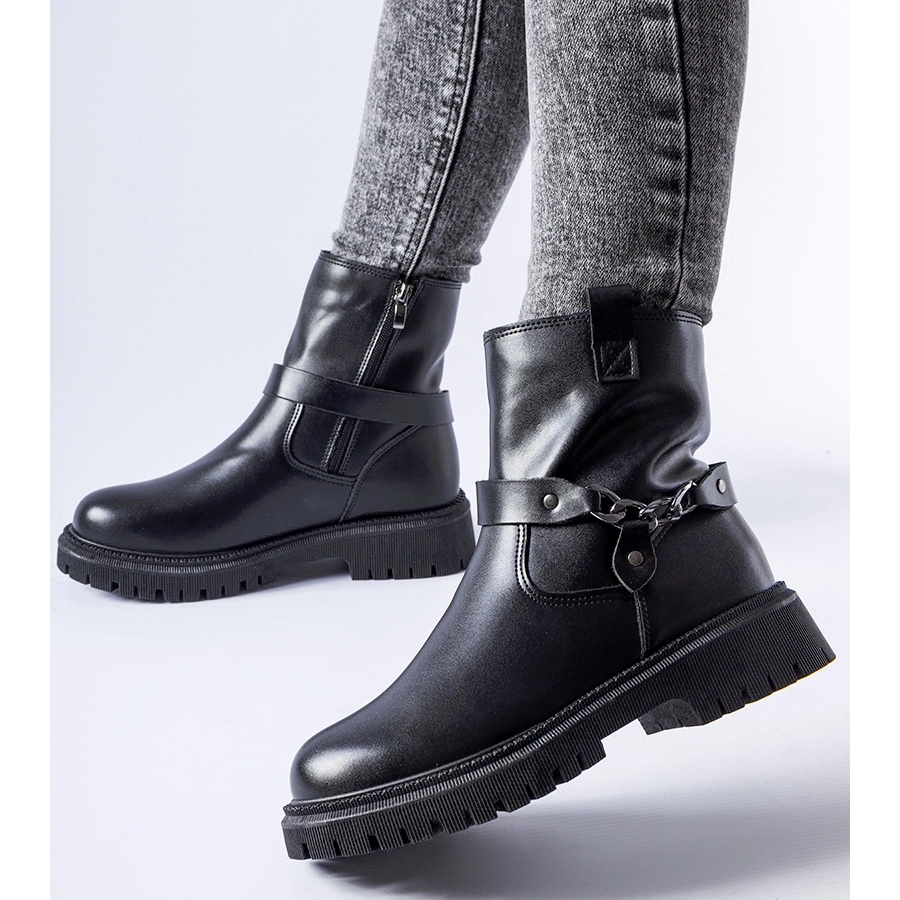 Inna marka Cizme negre izolate cu lant de la Smithsons negru
