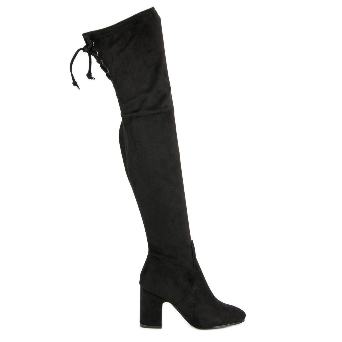 Detalii: Super Me Cizme negre la coapsă pe un post negru