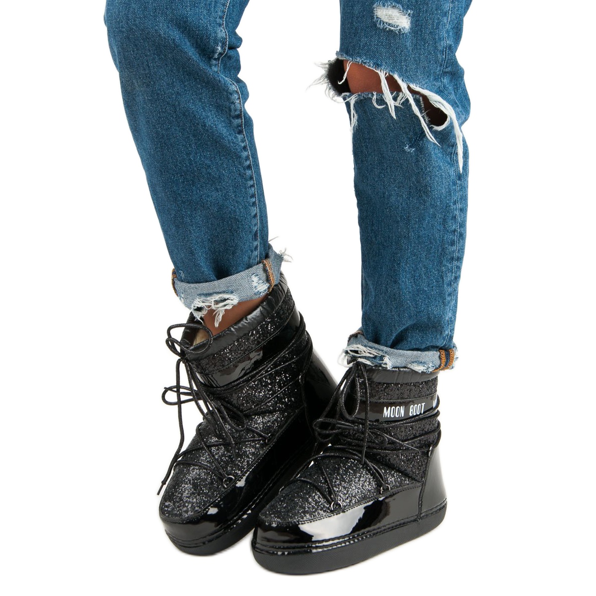 Finisajul patentat adaugă o strălucire unică, ceea ce face ca acești pantofi să se potrivească perfect cu o varietate de stiluri de iarnă. Culoarea lor neagră minimalistă le face o piesă vestimentară universală pe care o puteți asorta cu ușurință la orice stil de iarnă.