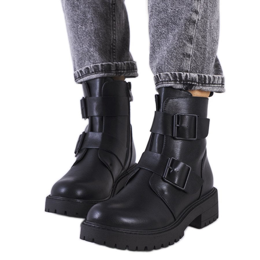 Cizme Black Lebost - elegant, confortabil și gata pentru zile mai răcoroase. Fabricat din eco -ple, așezat pe un călcâi scăzut, de 4 cm, cu un protector, cu o tundere subtilă de nituri mici, care adaugă caracter de rocă. Partea superioară care ajunge la gleznă (aproximativ 18 cm) cu bucla în spate și cusăturile decorative subliniază finisajul designerului. Două dungi cu catarame și un nas rotund formează un aspect la modă, iar fixarea pe fermoar din interior face mai ușor de pus - în plus, Lacing vă permite să potriviți tăierea la picior. Interiorul izolat cu o pătură de încălțăminte oferă confort termic în sezonul de toamnă și iarnă.