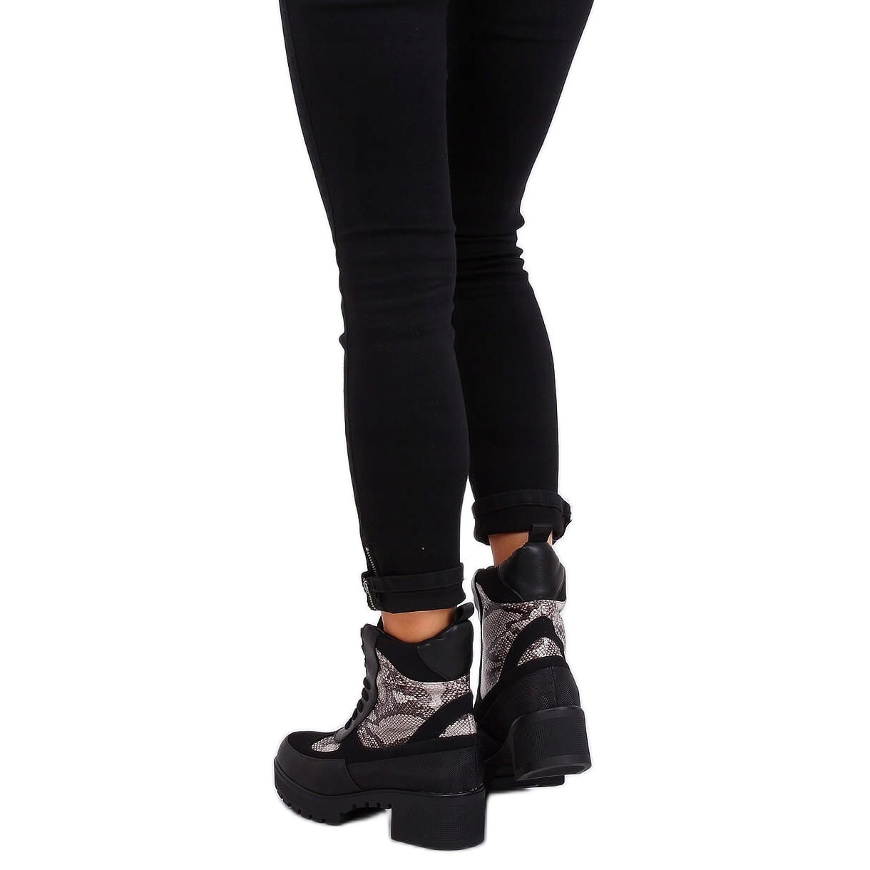 Detalii: Cizme negre pentru femei negre 99-58 Piele de șarpe negru